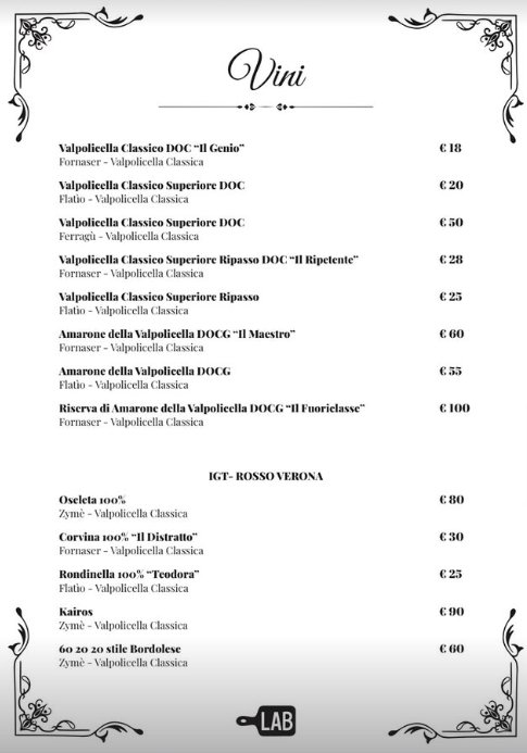 La nostra carta dei vini nasce dalla passione per il territorio e dalla voglia di offrirti un’esperienza sensoriale completa: una selezione curata di etichette locali della Valpolicella e grandi vini italiani, perfetti per accompagnare ogni piatto del nostro menù.